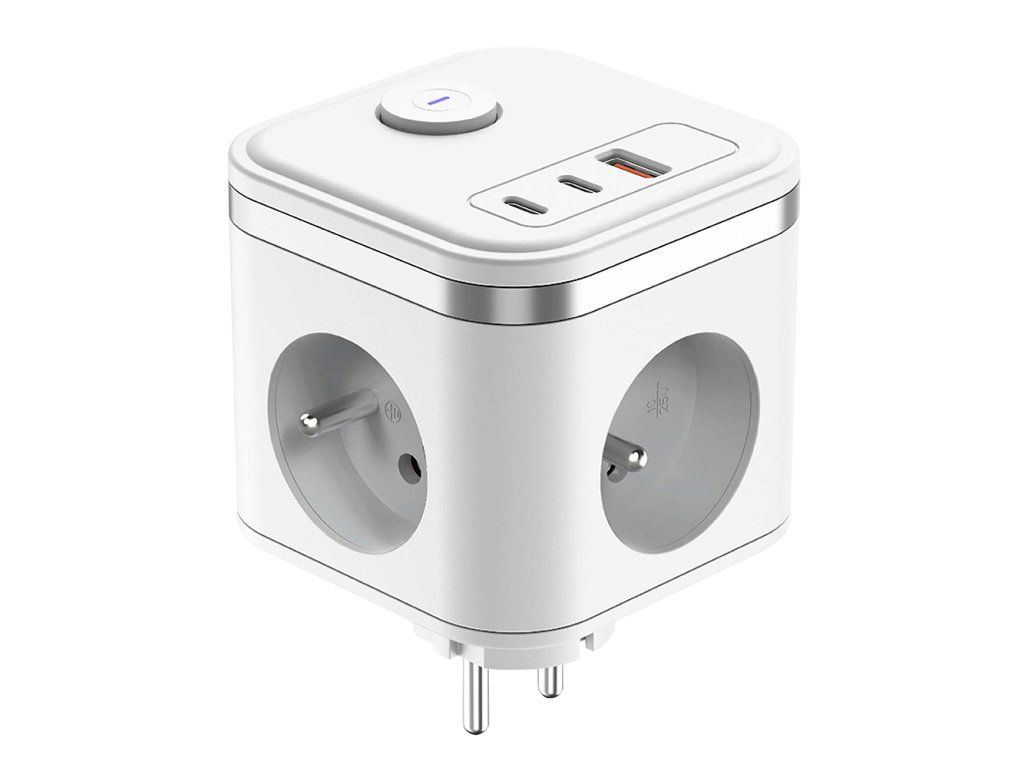 Viking síťový adaptér Y33, 3x 230 V, 1x USB-A, 2x USB-C, tlačítko ON/OFF, bílá