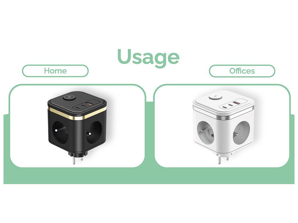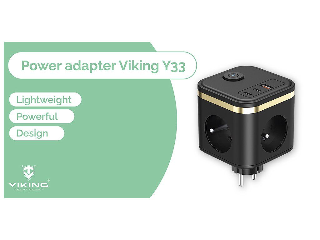 - Vysoký výkon a všestrannosť: Síťový adaptér VIKING Y33 zvláda napájať až tri zariadenia cez AC výstupy a tri zariadenia cez DC USB výstupy súčasne.