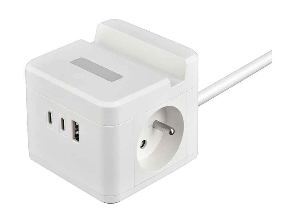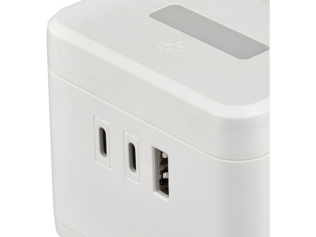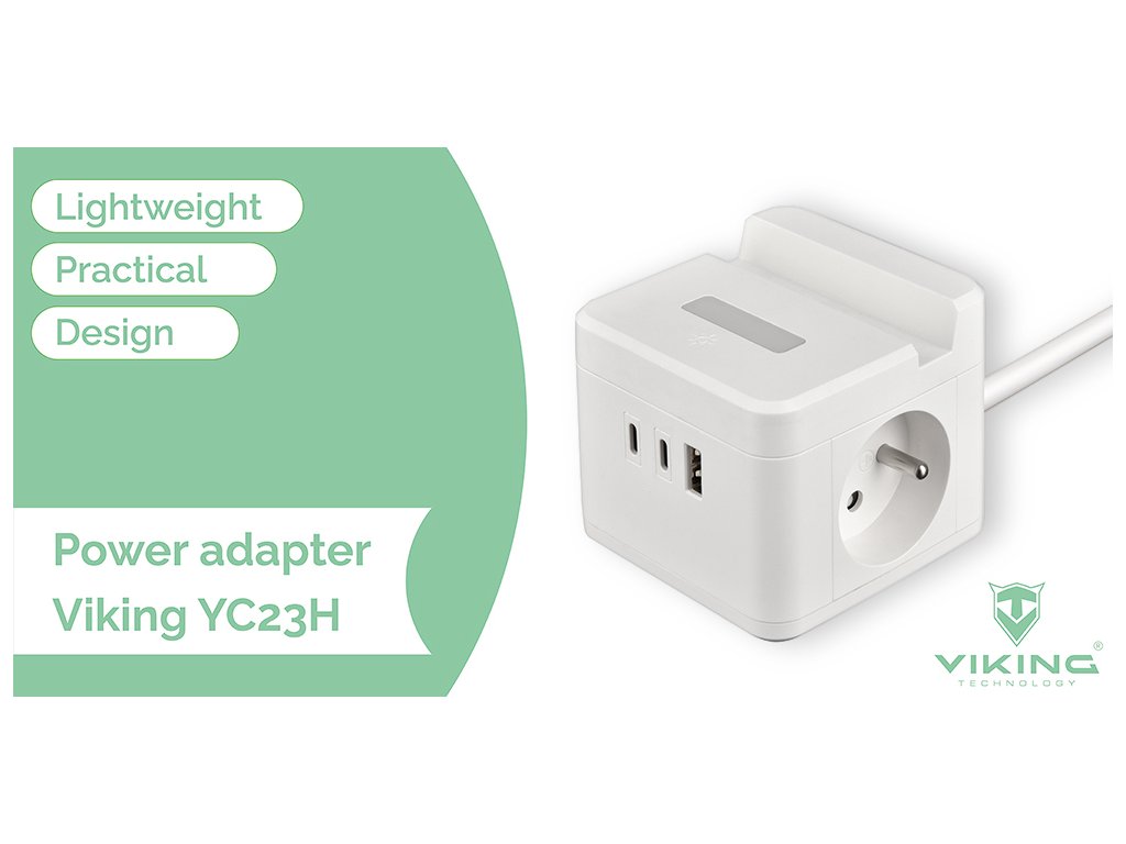 Viking síťový adaptér YC23H, 2x 230 V, 1x USB-A, 2x USB-C, dotykové světlo, funkce stojánku, bílá