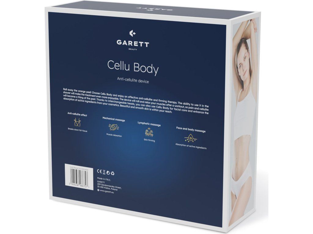 Unikátna hlavica Garett Beauty Cellu Body s guličkami podporuje vstrebávanie aktívnych látok z kozmetiky, krémov a sér, ako do pokožky tváre, tak celého tela. Masážny prístroj zlepšuje prekrvenie pokožky, čo zvyšuje jej pevnosť a výživu, a aktívne látky sa lepšie vstrebávajú, zanechávajú pokožku hydratovanú a vyživenú.
