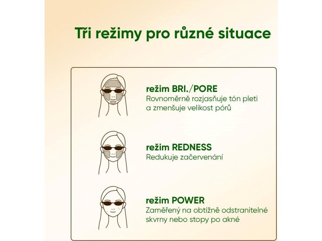 Prístroj ponúka tri expertné režimy, ktoré sa zameriavajú na najčastejšie problémy pleti:
