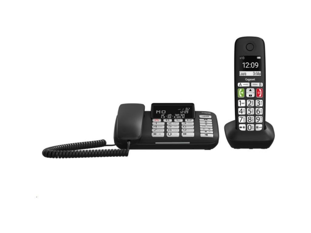 - tieto dve dokonale zladené zariadenia fungujú ako kombinovaná súprava a zaručujú maximálnu voľnosť pohybu vďaka prepojeniu káblového telefónu na pevnom mieste s flexibilným slúchadlom