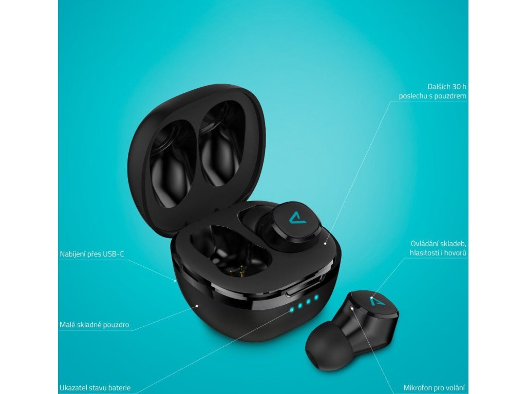 | Funkcia slúchadiel | Podpora hlasových asistentov (Siri, Google Assistant, ovládanie skladieb (prehrávanie/pauza, nasledujúca/predchádzajúca skladba), ovládanie hlasitosti, integrovaný mikrofón (ovládanie telefónnych hovorov - prijatie/odmietnutie a ukončenie hovoru), 4 LED indikátory stavu batérie, ergonomický dizajn, odolnosť voči potu a vlhkosti. |