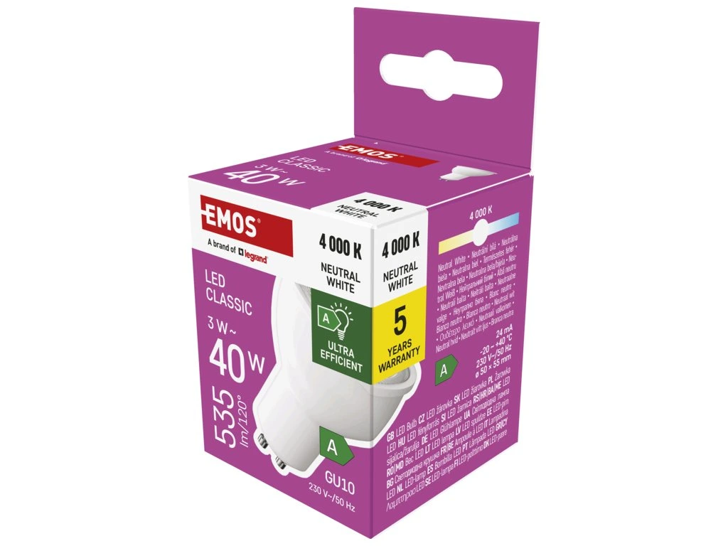 EMOS LED CLS MR16 3W(40W) 535lm GU10 NW A CLASS