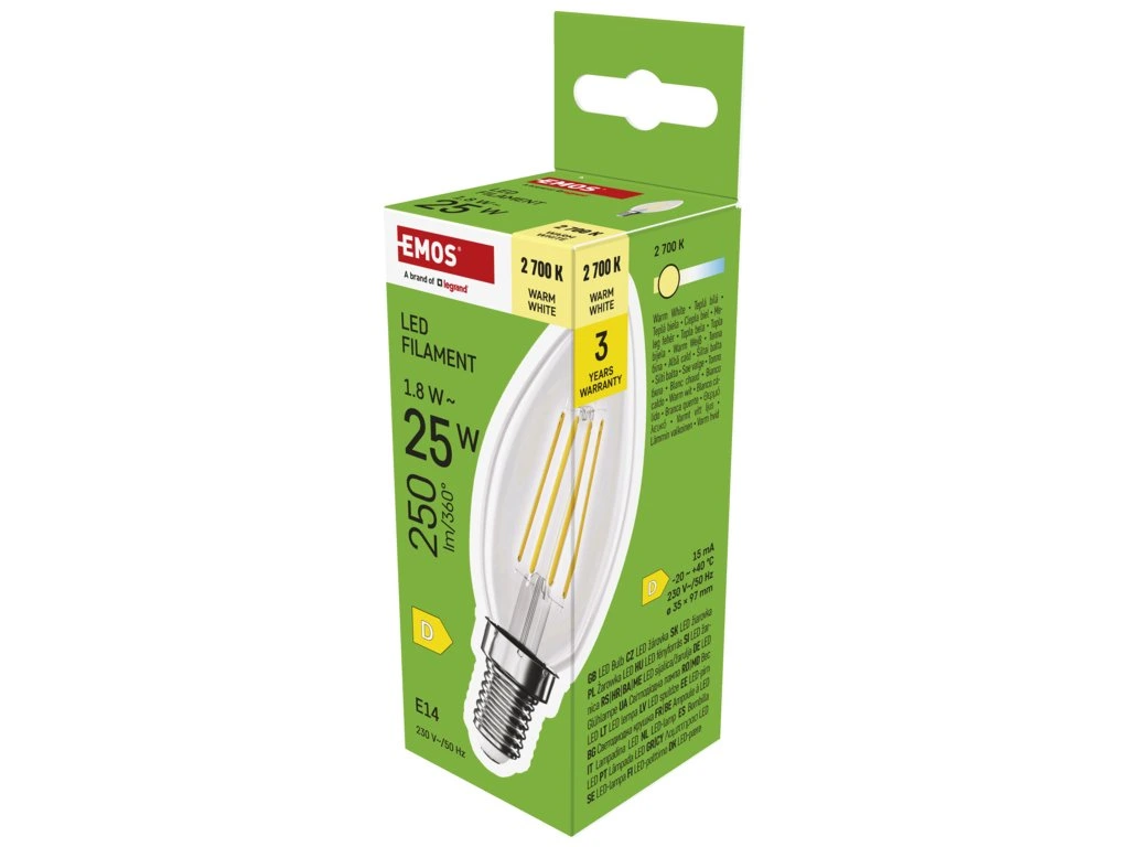 EMOS LED FLM CANDLE 1,8W(25W) 250lm E14 WW