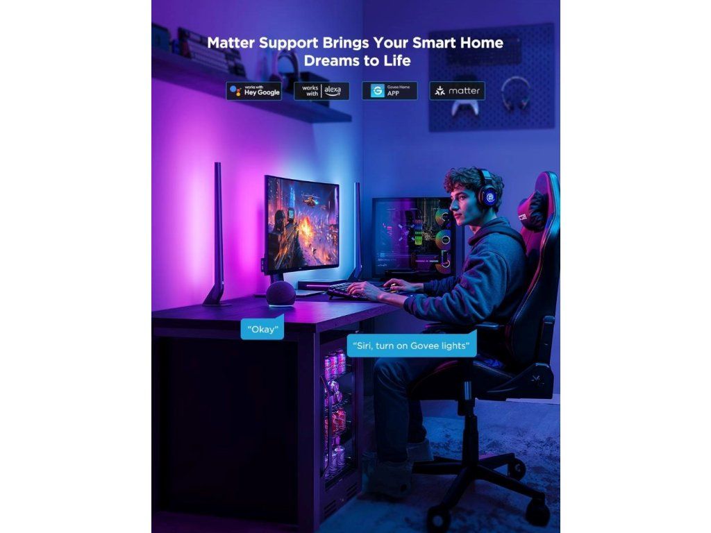 S dôrazom na pohodlie je táto sada plne kompatibilná s Matter pre zapojenie do väčšiny Smart Home systémov vrátane Apple Homekit, Google Home, Samsung Smart Things a Amazon Alexa a podporuje aj hlasové ovládanie. Ideálne pre filmové večery aj napínavé herné seanse, Govee AI Sync Box Kit 2 prináša maximálny herný zážitok z kina rovno k vám domov a zabezpečuje, že každá minúta pri hre bude nezabudnuteľná.