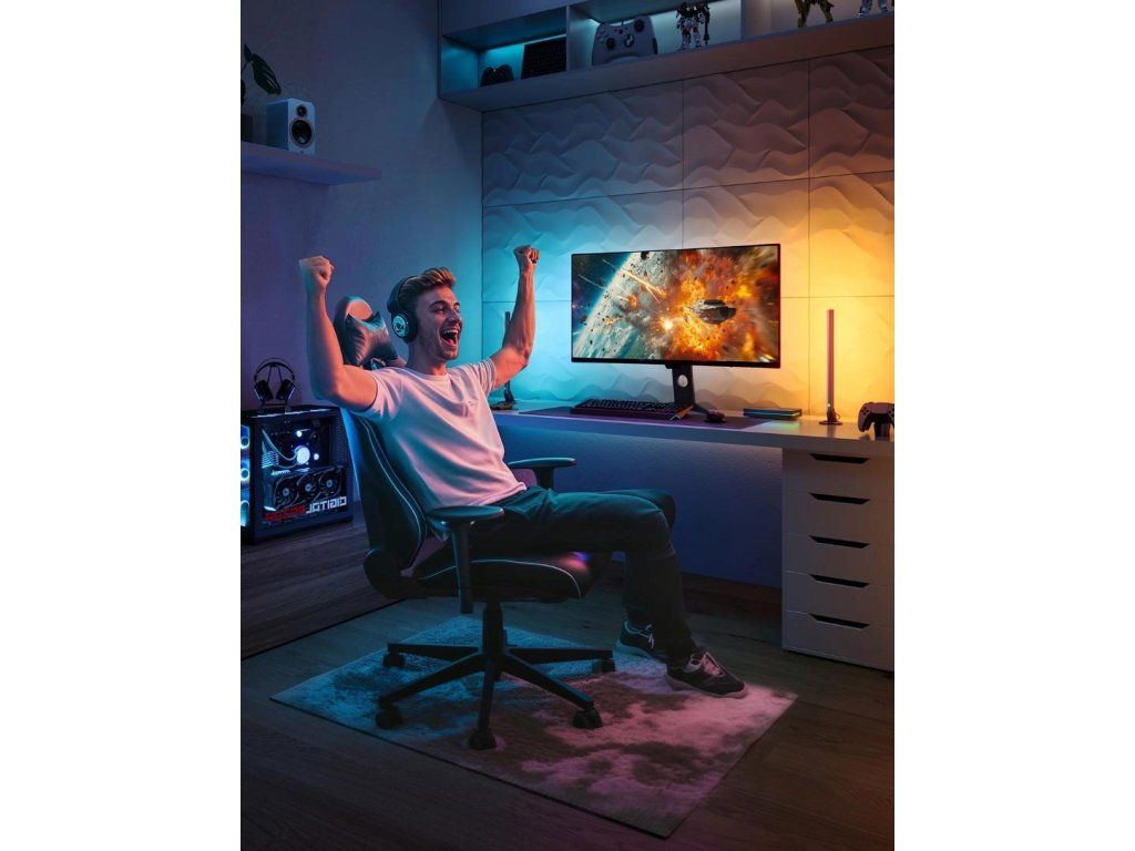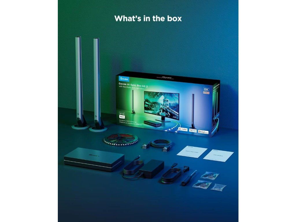 Govee AI Sync Box Kit 2 premení váš domov na centrum dokonalého audiovizuálneho zážitku vďaka pokročilej technológii poháňanej umelou inteligenciou. Navrhnutý tak, aby sa k nemu mohli pripojiť až 4 zariadenia ako PC konzola a iné zdroje HDMI signálu a kompatibilný s monitory o uhlopriečke 27-34 palcov, tento kit analyzuje HDMI signál v reálnom čase a premieta farby presne zodpovedajúce dianiu na obrazovke. Vďaka svetelným páskam RGBWIC si užijete precíznu reprodukciu farieb a dynamickú odozvu, ktoré vytvoria okolité prostredie, aby každý moment dostal život. Ako doplnenie maximálneho zážitku obsahuje systém tiež RGBICWW LED panely, ktoré okrem monitora ešte rozšíria osvetlenú plochu.