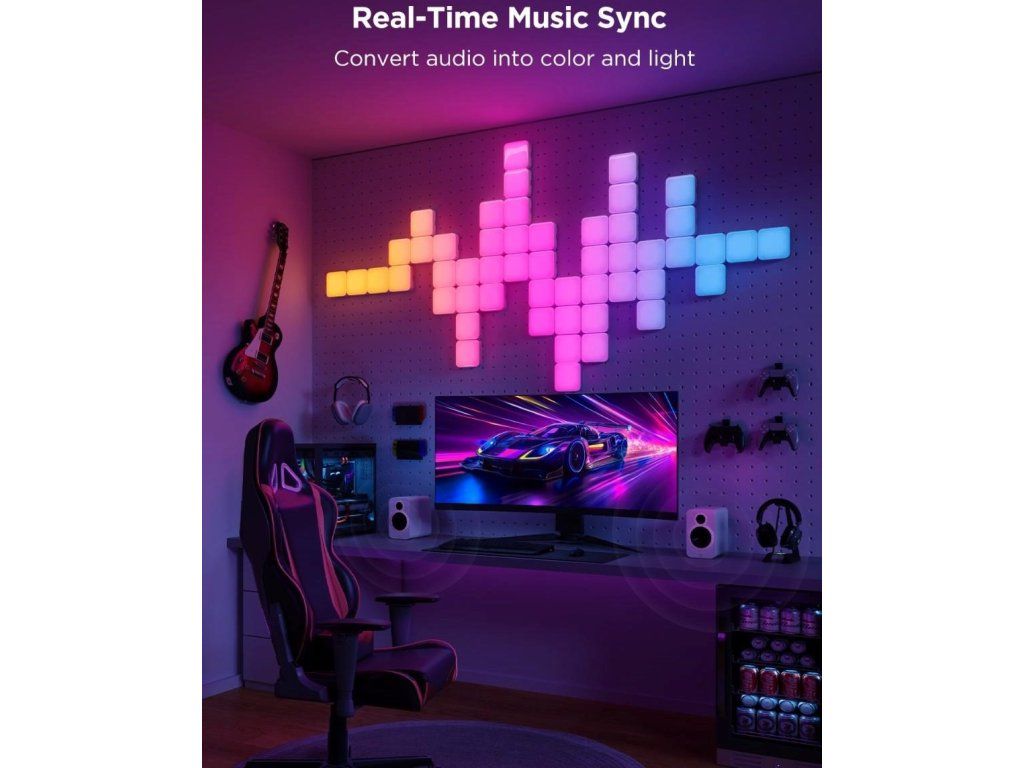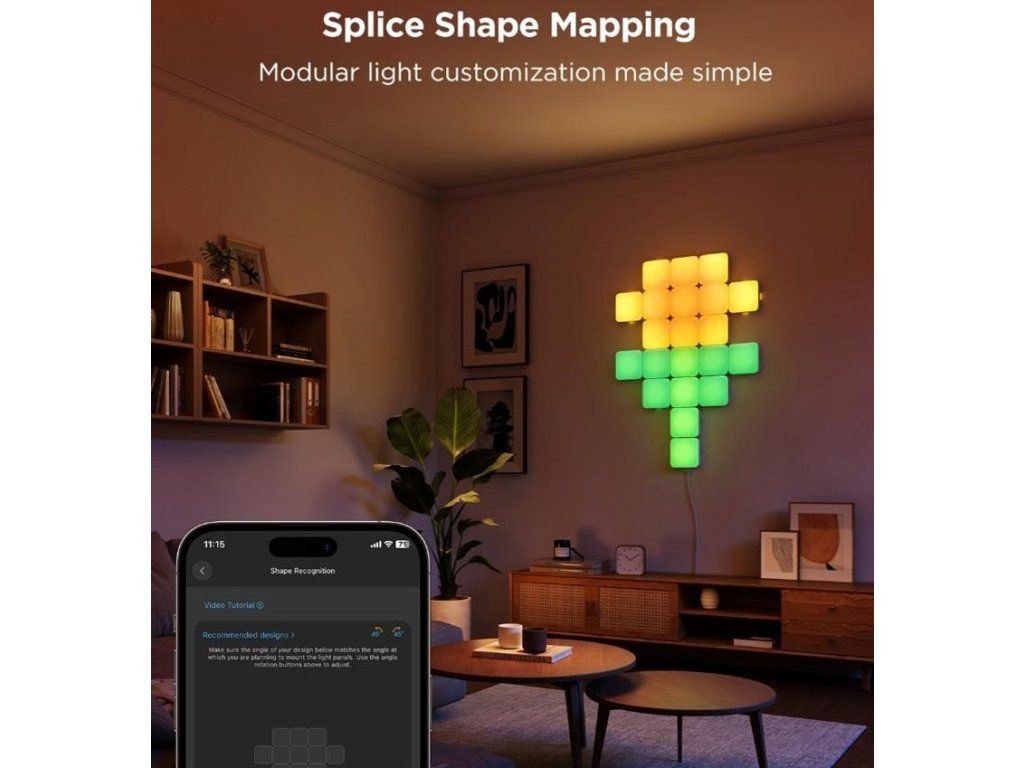Svetlá sa dajú ľahko pripevniť pomocou predinštalovanej pásky 3M, čo znamená, že nie je potrebné žiadne vŕtanie ani komplikácie. Balenie obsahuje 6 panelov, ktoré môžete ľubovoľne kombinovať do rôznych tvarov a konfigurácií – dokonca môžete spojiť až 70 panelov naraz! Ovládanie svetiel je jednoduché vďaka šikovnej aplikácii, ktorá umožňuje výber z prednastavených scén, hudobných vizuálov a vlastných nastavení farieb.