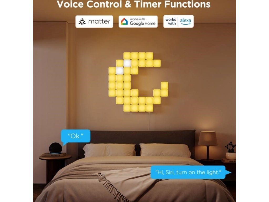Govee Mini Panel Lights sú kompatibilné s Google Home, Matter protocol, Amazon Alexa a podporujú väčšinu inteligentných asistentov. To znamená, že svetlá môžete ovládať hlasom, zapojiť ich do automatizácie inteligentnej domácnosti alebo naplánovať ich zapnutie a vypnutie pomocou zabudovanej funkcie časovača. Každý panel je navrhnutý s ohľadom na nízku spotrebu energie a vynikajúcu kvalitu osvetlenia, ktoré premení akýkoľvek priestor. Vďaka možnosti vizualizácie hudby svetlá reagujú na rytmus, čím prinášajú do vášho domova úplne nový rozmer zábavy a atmosféry.