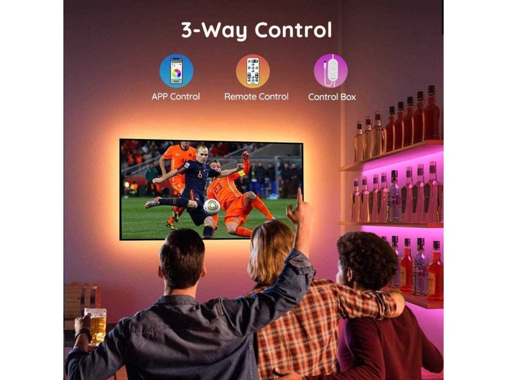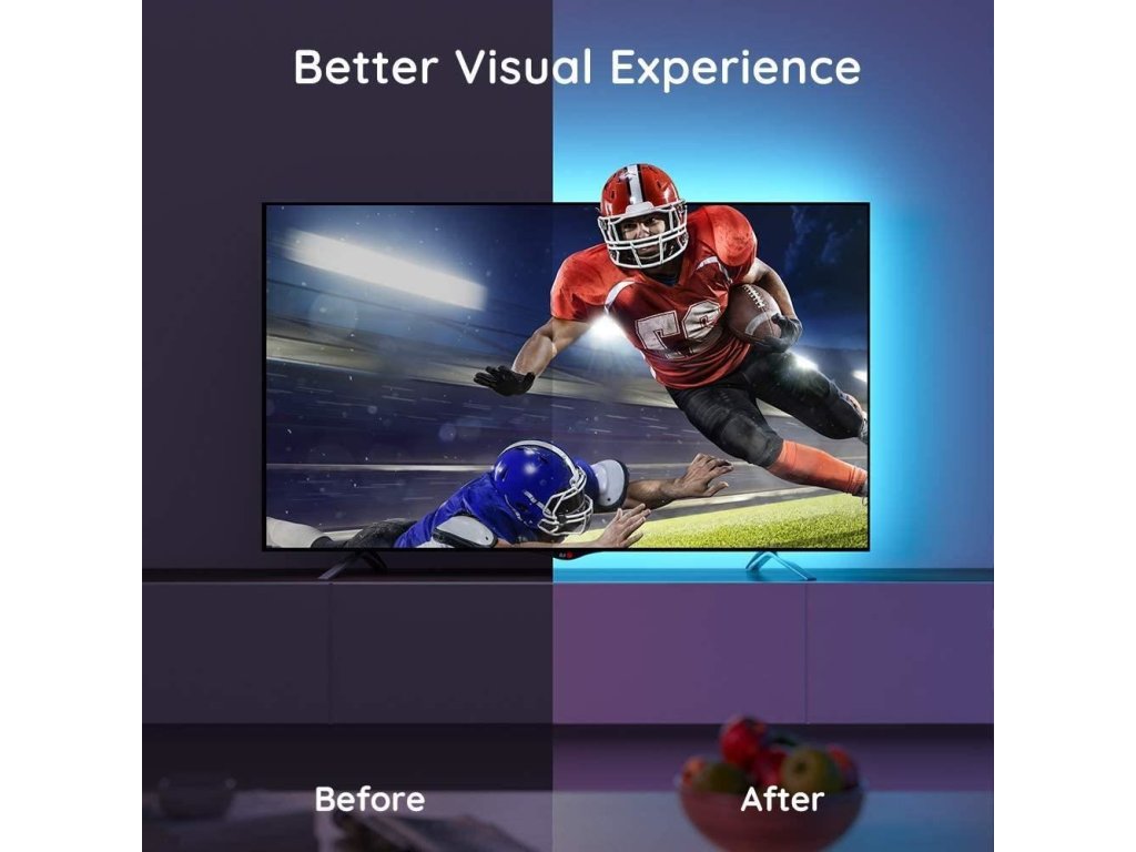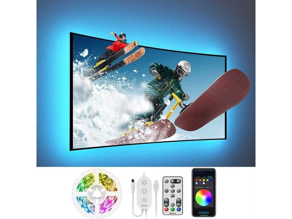 Vylepšite svoje herné, filmové a hudobné zážitky so žiarivým inteligentným osvetlením Govee TV 46-60 LED RGB s ovládačom. 16 miliónov farieb s viac ako 64 efektovými režimami a synchronizáciou hudby posunie váš zážitok z televízora alebo hrania hier na vyššiu úroveň. Ovládajú sa hlasom cez Siri, Amazon Alexa alebo Google Assistant alebo cez aplikáciu Govee Home. Farebné podsvietenie opticky zväčší obraz a tiež šetrí vaše oči.