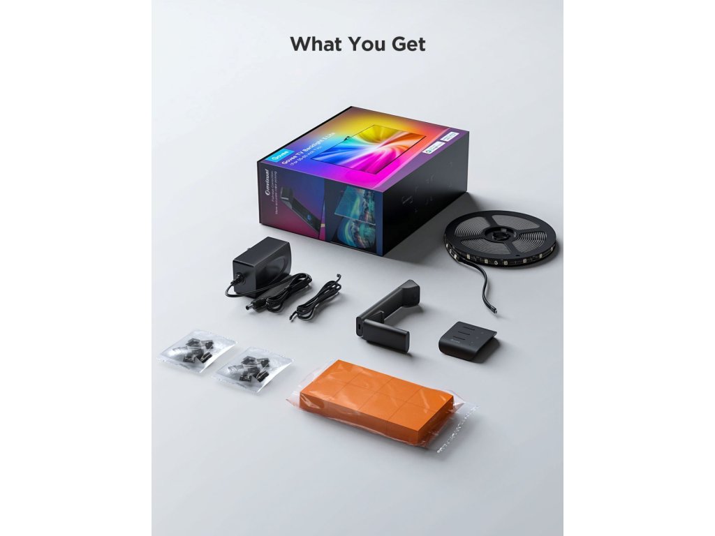 Inštalácia je jednoduchá, jednotlivé pásky sú opatrené samolepiacimi 3M pásikmi, následne sa pásky aj kamera prepoja s control boxom a následne sa pomocou dodávaných kalibračných blokov vykoná úvodné nastavenie, aby boli farby naladené na vašu televíziu a váš interiér. Inštalácia sa uskutoční bez náradia, všetko potrebné nájdete v balení.