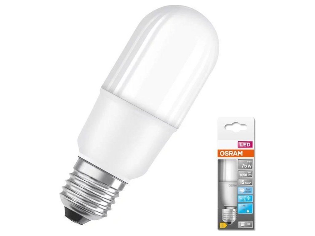 (BAL:1/6ks) LED žárovka OSRAM LED STAR, tvar CLASSIC STICK 75 , 9W (náhrada za 75W), E27, 220-240V, studené bílé světlo 4000K, svítivost: 1050lm, úhel vyzařování 200°, E, Svítí kolem dokola 360° Rozměr: 116x38mm. Jmenovitá životnost 15000 h. Po
