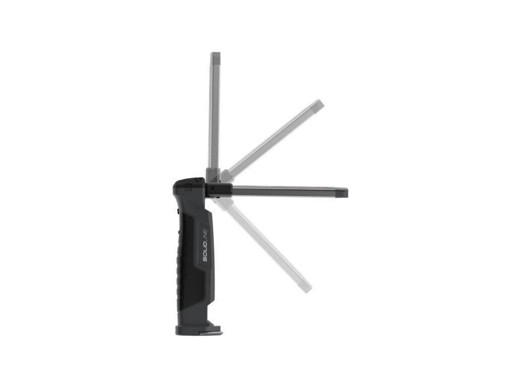 Vďaka hliníkovej hlave lampy je možné ju sklápať aj otočiť o 180°, čo umožňuje spoľahlivé osvetlenie aj vo stiesnených pracovných priestoroch. Bočné COB záplavové LED poskytuje biele alebo červené svetlo v piatich rôznych režimoch, zatiaľ čo dodatočná bodová LED poskytuje bodové biele svetlo na dvoch úrovniach. Pre optimálne držanie je vybavená pogumovanou rukoväťou. Integrovaná batéria Solidline SW2R sa ľahko nabíja pomocou micro-USB.
