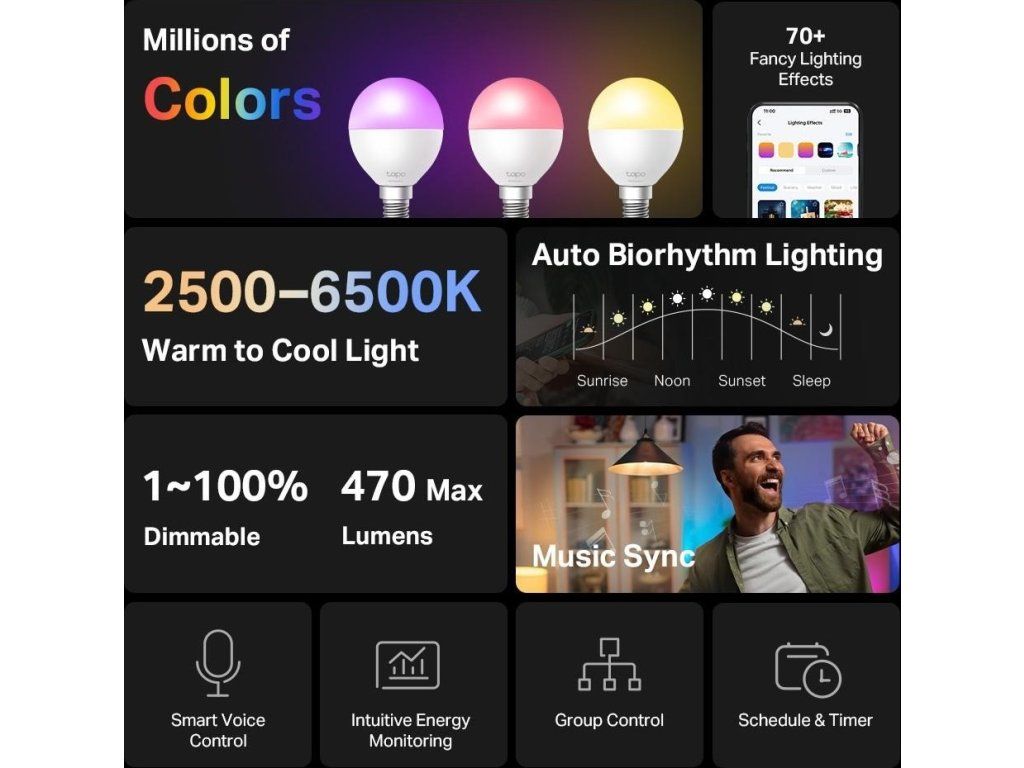 - Synchronizácia so zvukom: Použite aplikáciu Tapo na synchronizáciu chytré žiarovky P45 so skladbou a vytvorte synchronizovaný svetelný zážitok.