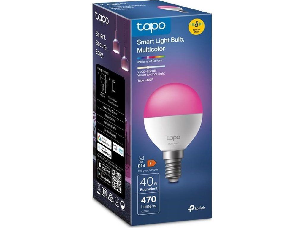 TP-Link Tapo L430P chytrá WiFi stmívatelná LED žárovka (barevná,2500K-6500K,470lm,2,4GHz,E14)