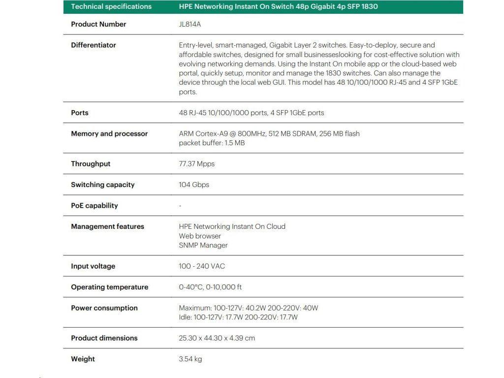 20 x Aruba Instant On 1830 48G 10/100/1000 4SFP Switch ( 20 pack )