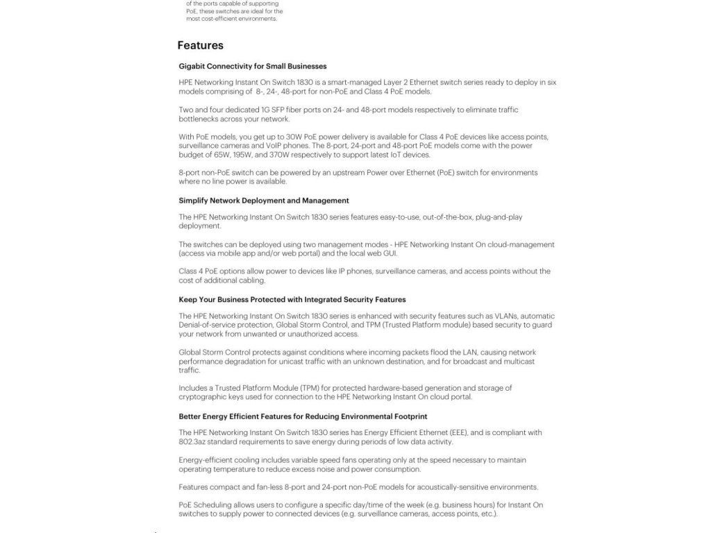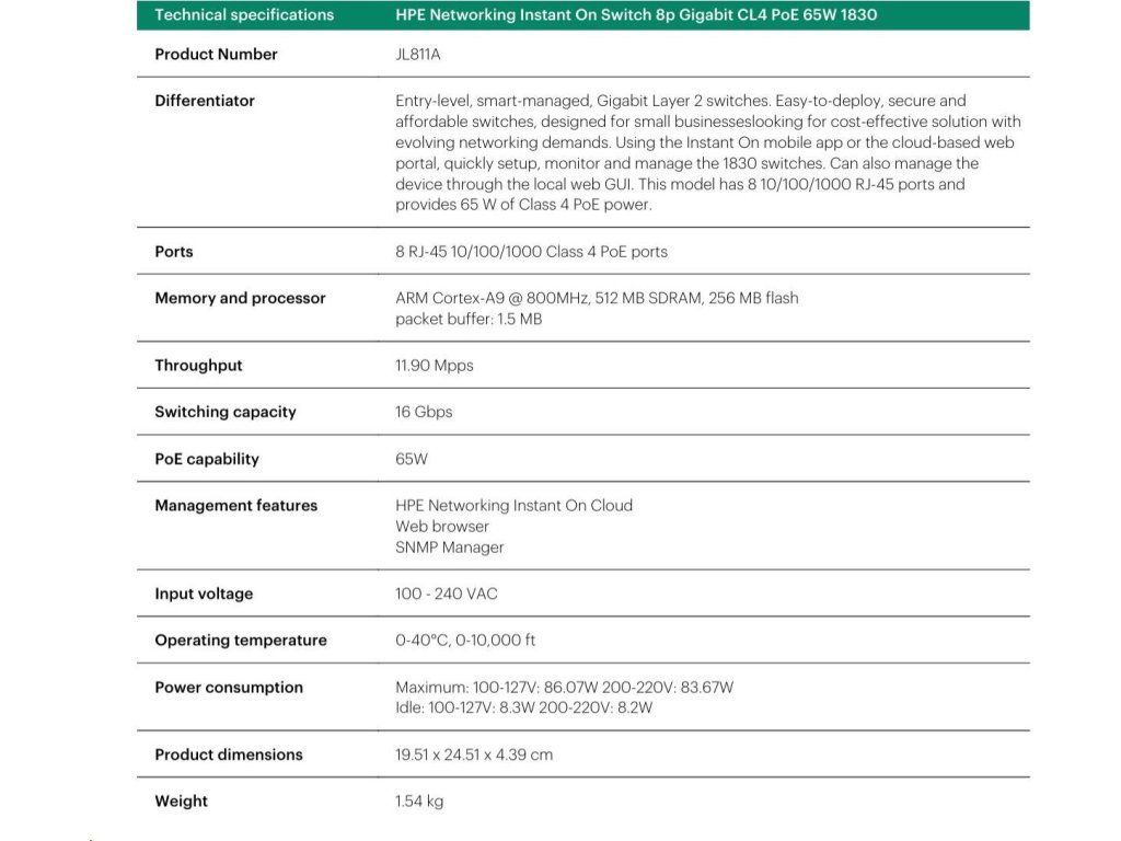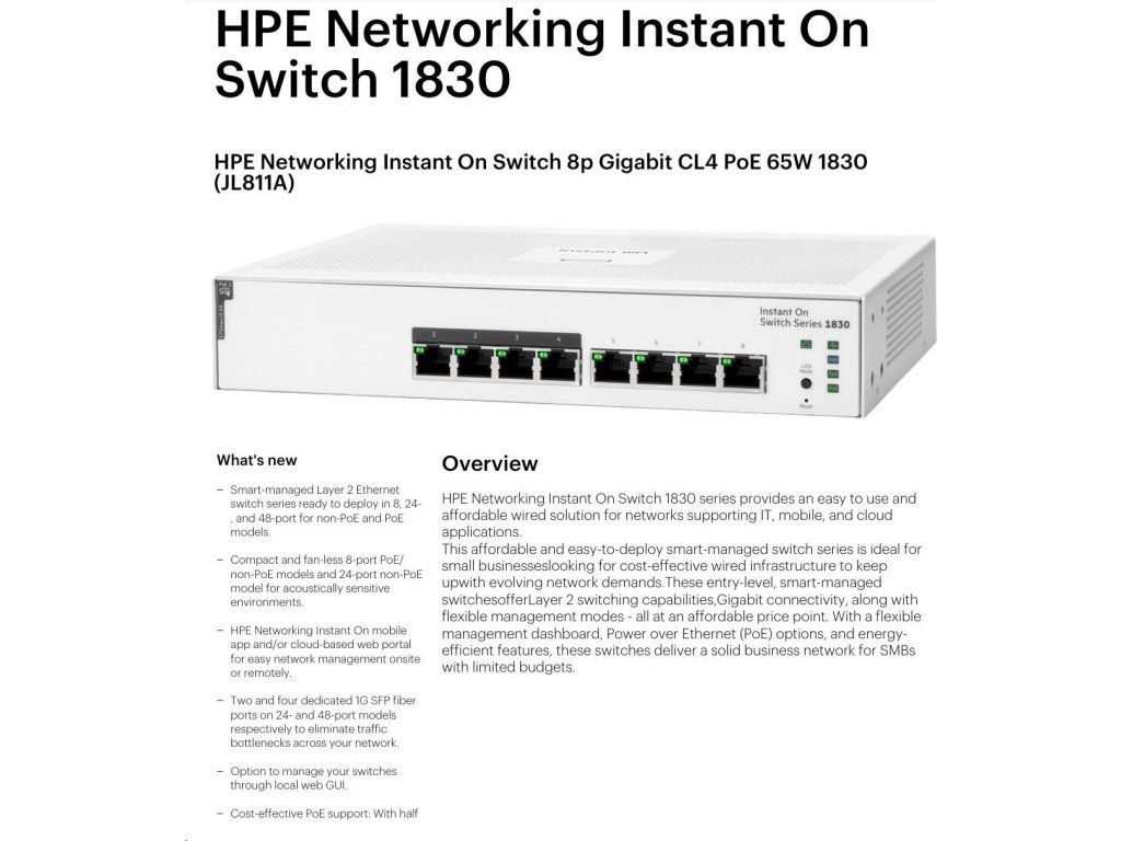 Aruba Instant On 1830 8G 65W Switch (8x RJ45 10/100/1000 4x Class4 PoE).