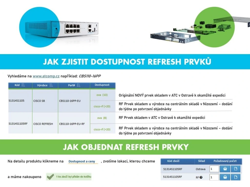 CISCO REFRESH sú repasované produkty, ktoré spoločnosť CISCO dodáva s certifikáciou kvality, zárukou a servisnou podporou odpovedajúcej ekvivalentnému novému produktu