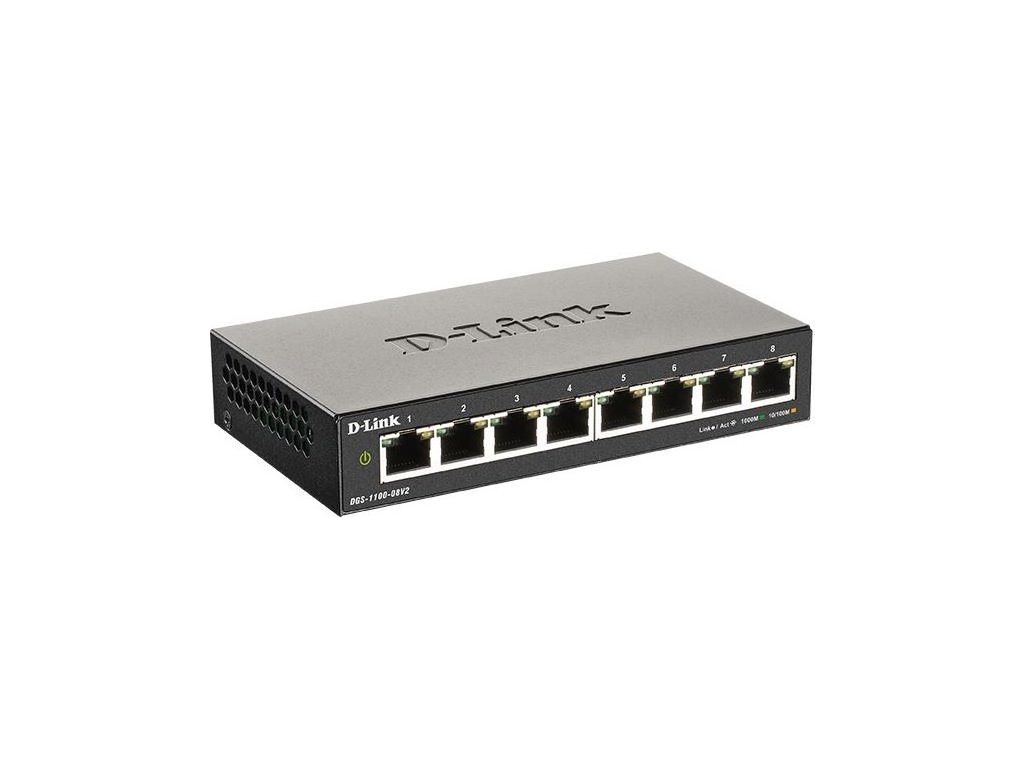 D-Link DGS-1100-08V2 8-portový gigabitový inteligentný riadený prepínač, bez ventilátora
