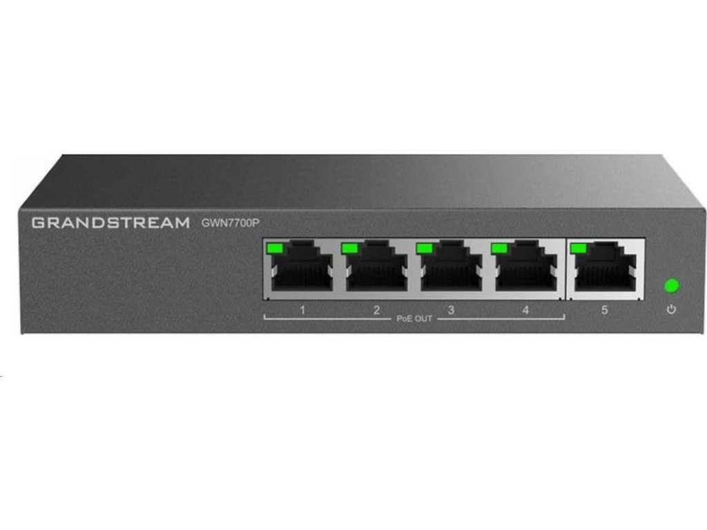 Grandstream GWN7700P je nespravovaný sieťový prepínač, ktorý poskytuje rýchle a cenovo dostupné riešenie na pridanie vysokorýchlostného gigabitového pripojenia do domácich kancelárií a malých a stredných podnikov.