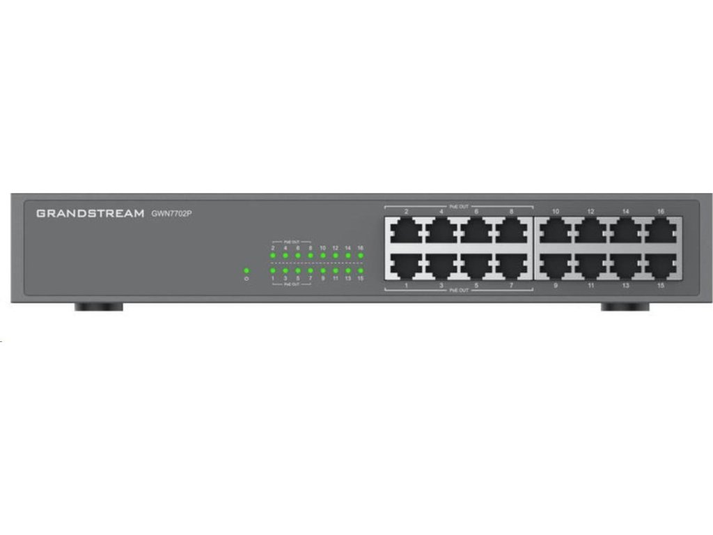 Grandstream GWN7702P je unmanaged síťový switch, který přináší rychlé a cenově dostupné řešení přidání vysokorychlostní gigabitové konektivity do domácích kanceláří a malých/středních podniků.