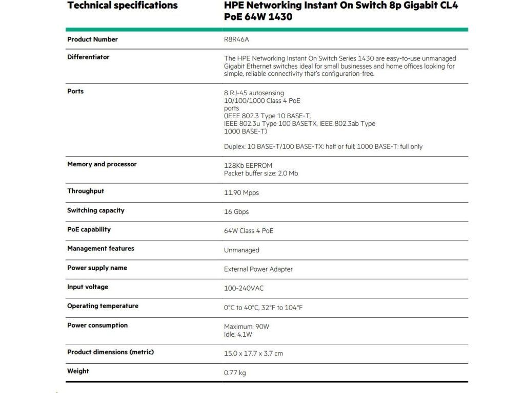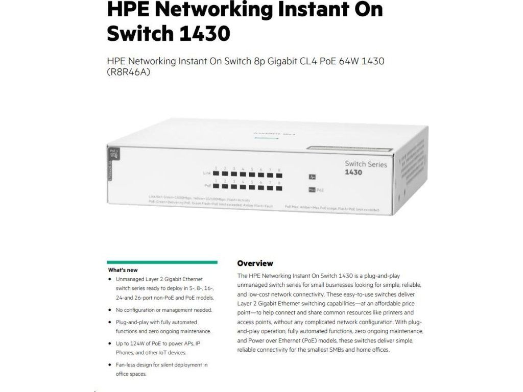 HPE Networking Instant On Switch 8p Gigabit CL4 PoE 64W 1430 (R8R46A)