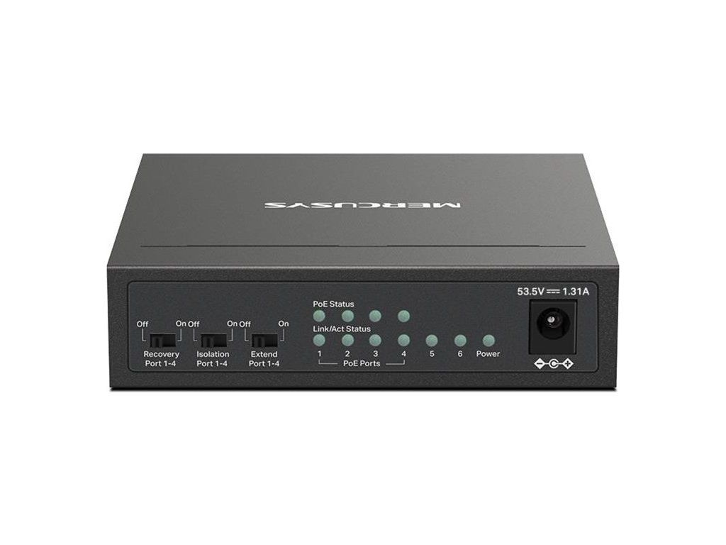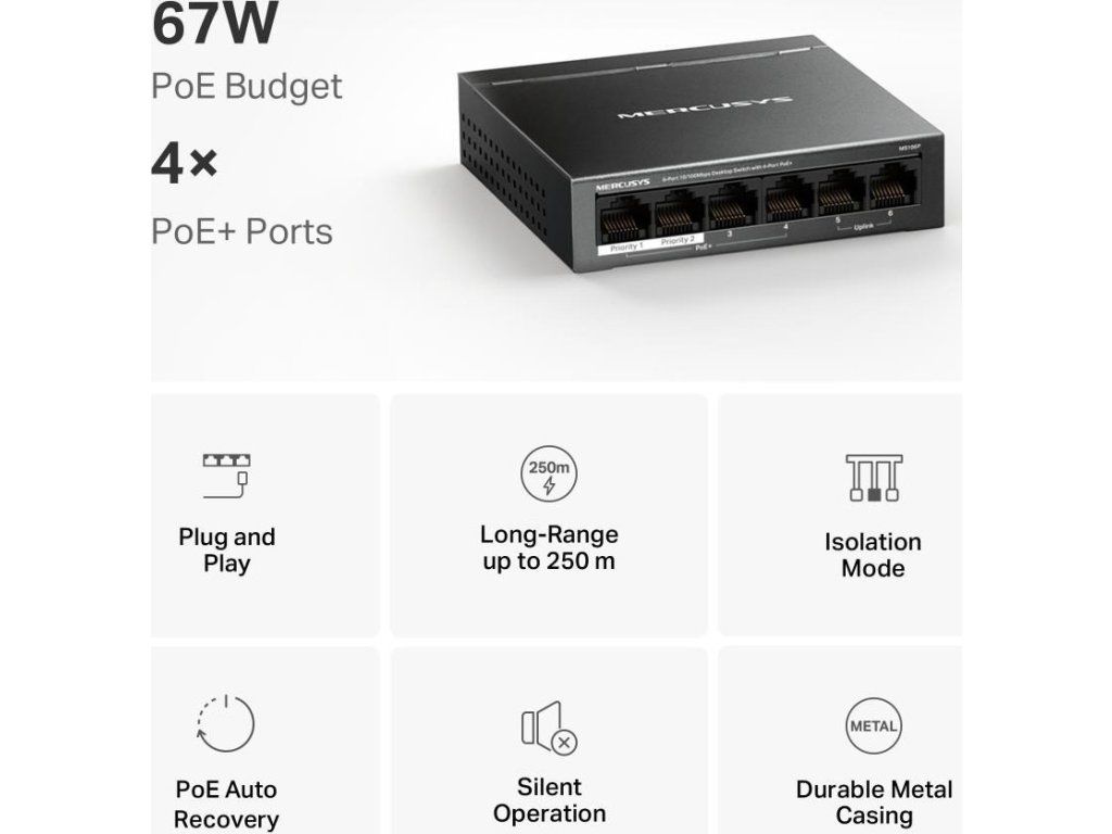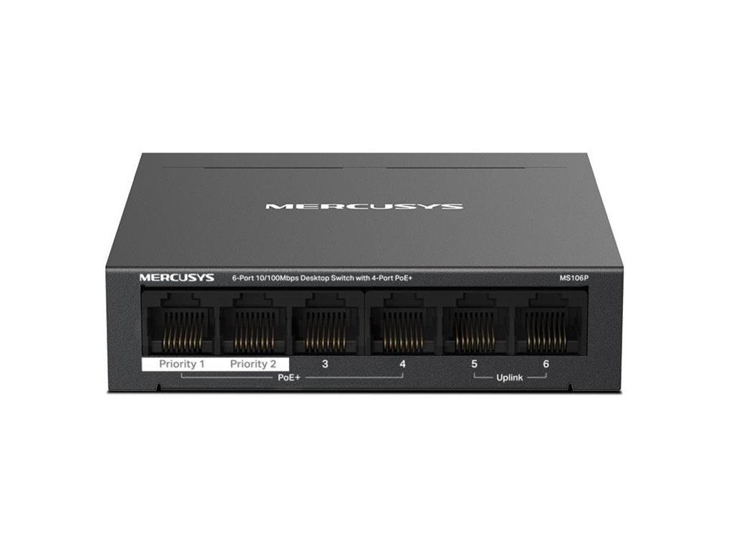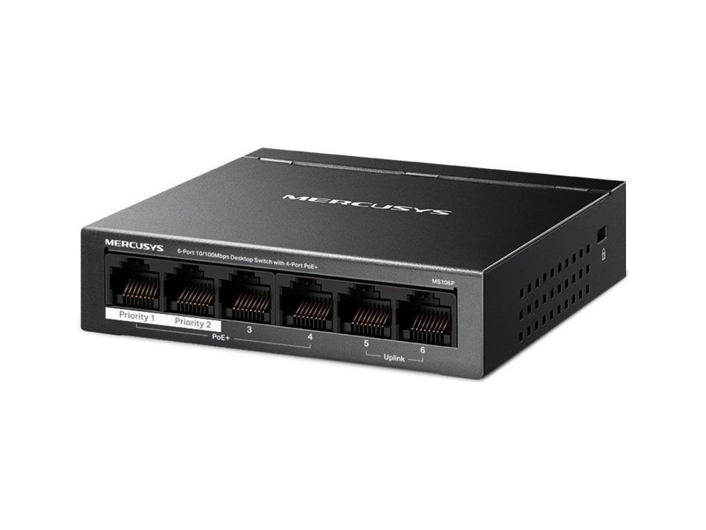 MERCUSYS switch MS106P (6x100Mb/s,4xPoE+,67W,fanless)