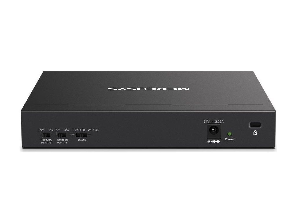 - MS110CMP poskytuje 2× uplink porty pri zapnutí režimu izolácie. Jeden na pripojenie na internet a jeden na pripojenie k NVR