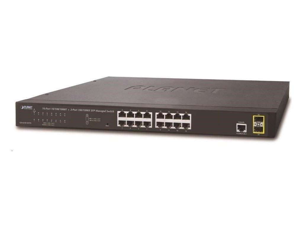 Planet GS-4210-16T2 Switch, L2/L4, 16x 1000Base-T, 2x SFP, Web/SNMPv3, VLAN, QoS, IPv6, bez ventilátora