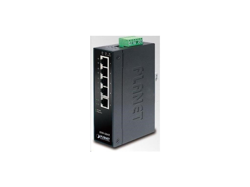 Planet ISW-501T, 5x 10/100, DIN, IP30, rozšírený teplotný rozsah -40 ~ 75 st.C