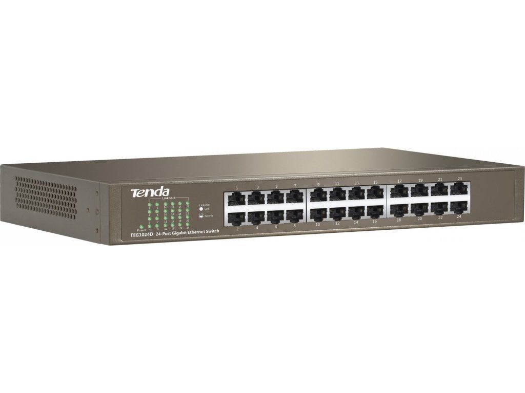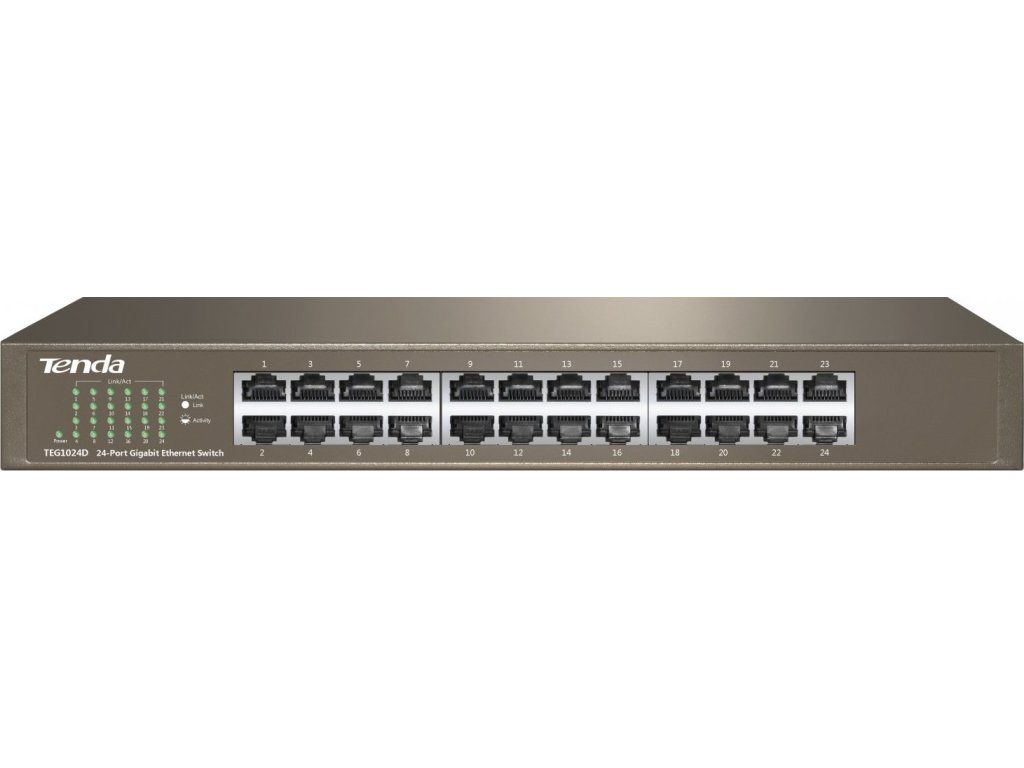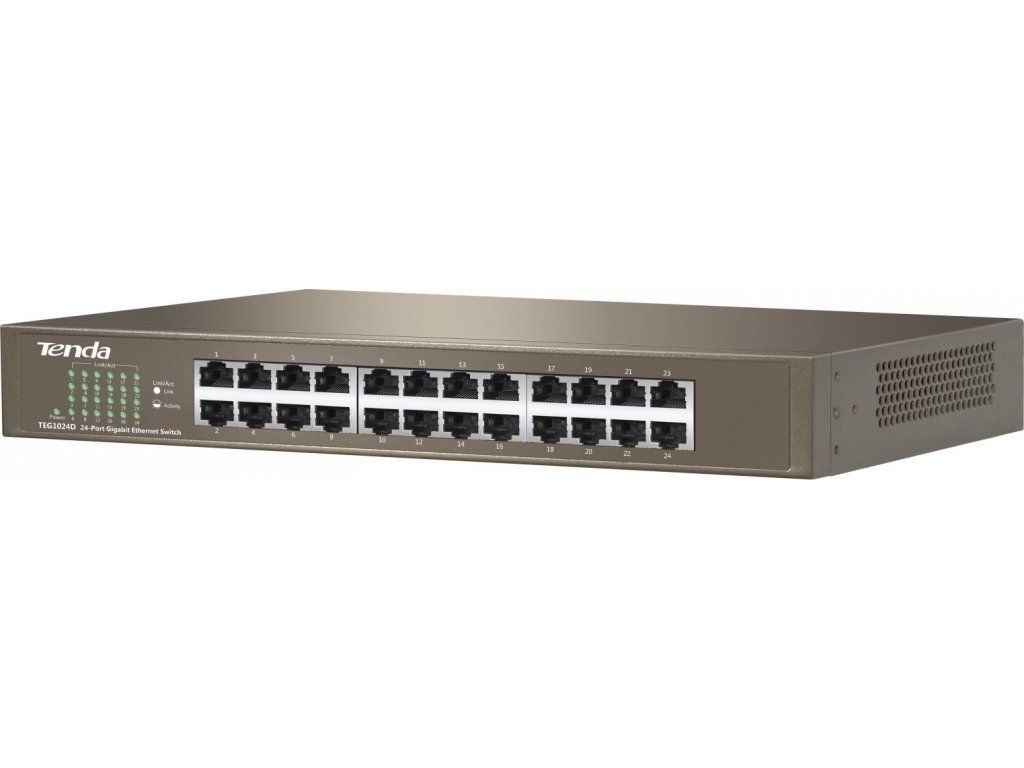 Tenda TEG1024D 24-portový gigabitový ethernetový prepínač, 10/100/1000 Mb/s, bez ventilátora, montáž do racku