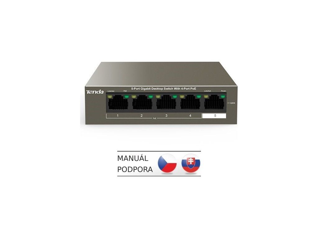 Tenda TEG1005P-4-63W prepína dáta pomocou 5 portov RJ45 s prenosovou rýchlosťou 10/100/1000 Mb/s s automatickou detekciou rýchlosti. Jeden port sa používa na Uplink a 4 porty PoE podporujú PoE 802.3af a 802.3at. Prepínač podporuje stabilné 8-jadrové napájanie PoE, 6kV prepäťovú ochranu. Podpora prepínania uzlov typu Store-and-Forward. Plne duplexné riadenie toku 802.3x, poloduplexné riadenie toku v režime Back-Pressure.