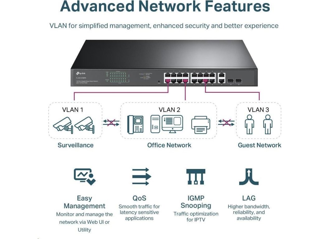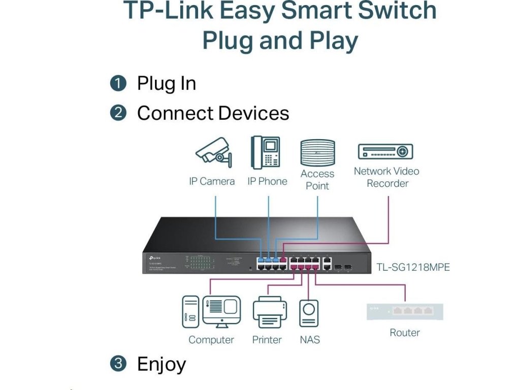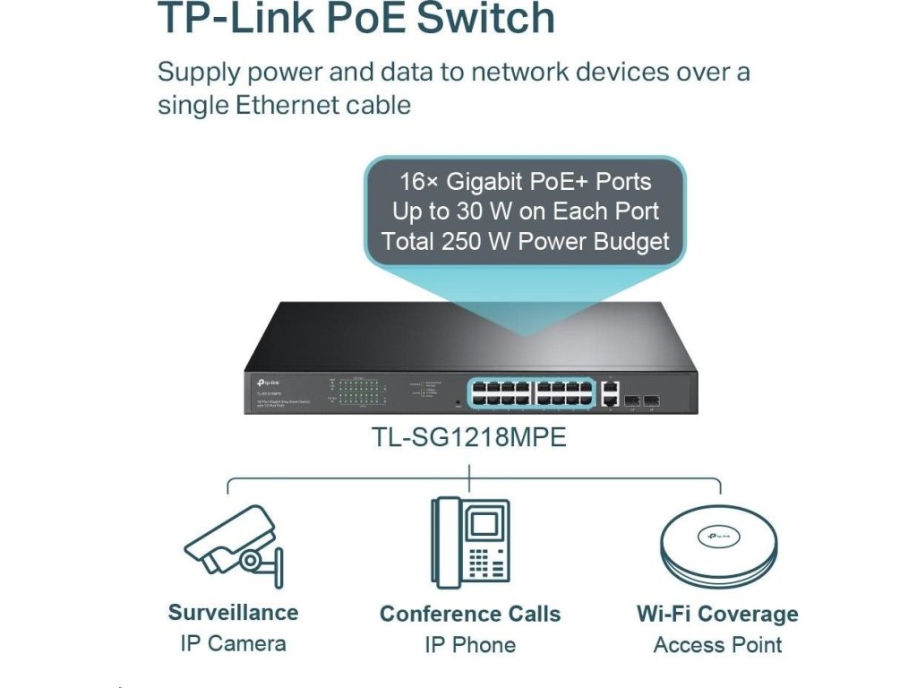 TP-Link CCTV Easy Smart switch TL-SG1218MPE (16xGbE, 2xGbE/2xSFP combo, 16xPoE+, 250W)