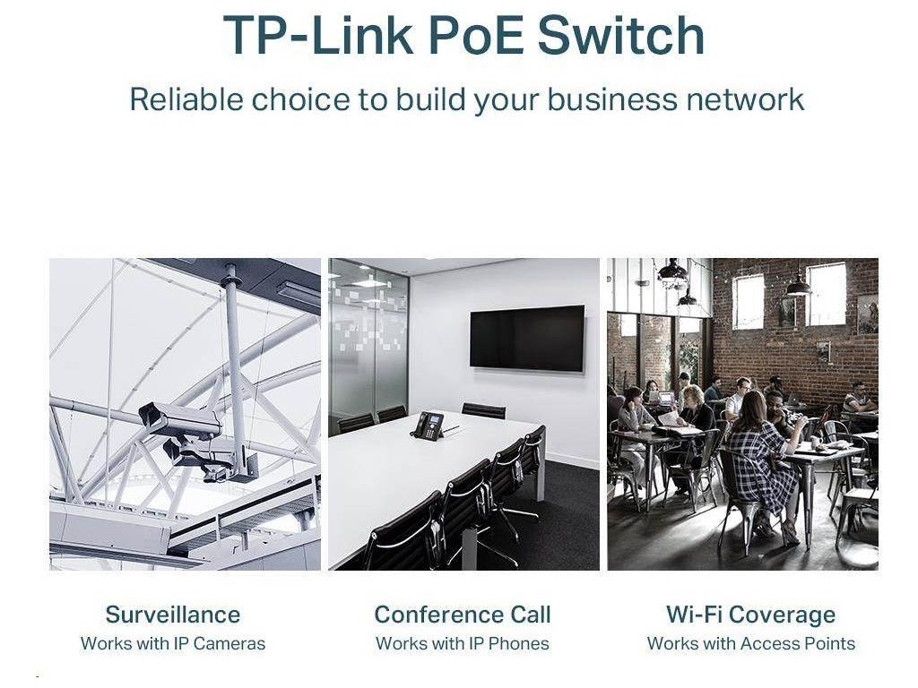 Vyhovuje štandardu 802.3af/at PoE+, ktorý podporuje až 30 W na každom portu PoE. Celkový rozpočet napájania 250 W PoE pre 16 gigabitových portov PoE+ umožňuje široké možnosti využitia, napríklad pre dohľadové systémy pre kancelárie, studentské koleje a malé firmy. Je plne kompatibilný s IP kamerami, prístupovými bodmi, IP telefónmi, počítačmi, tlačiarňami a ďalšími zariadeniami.