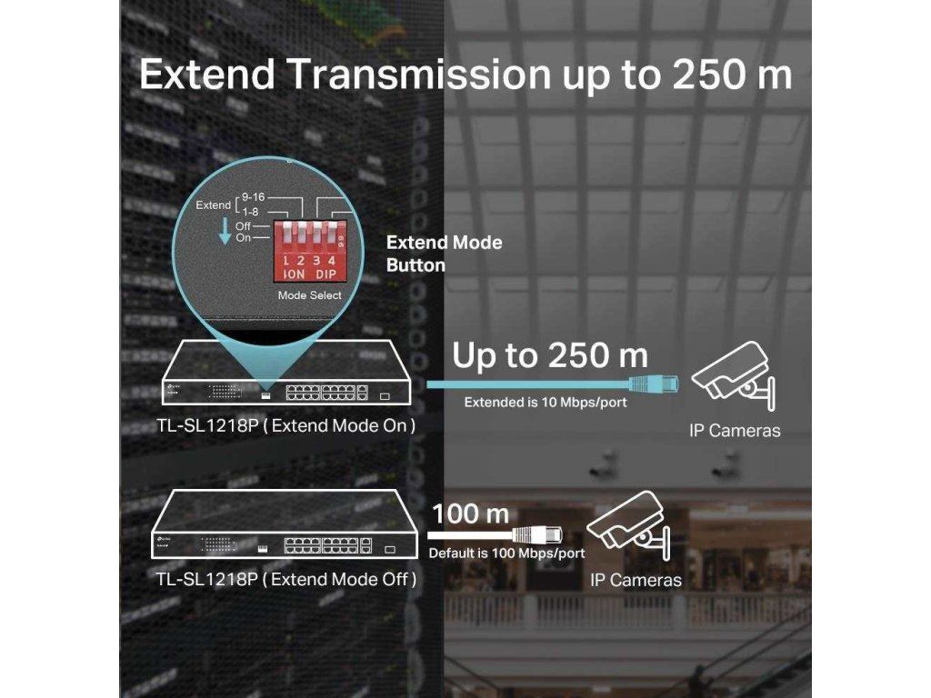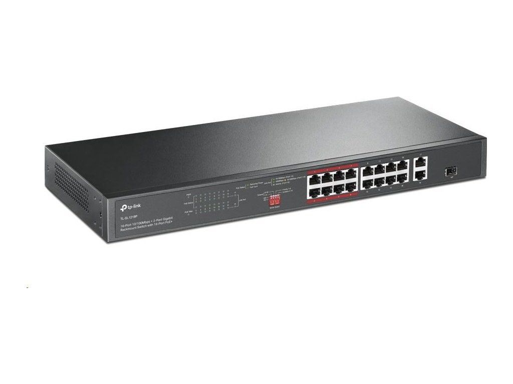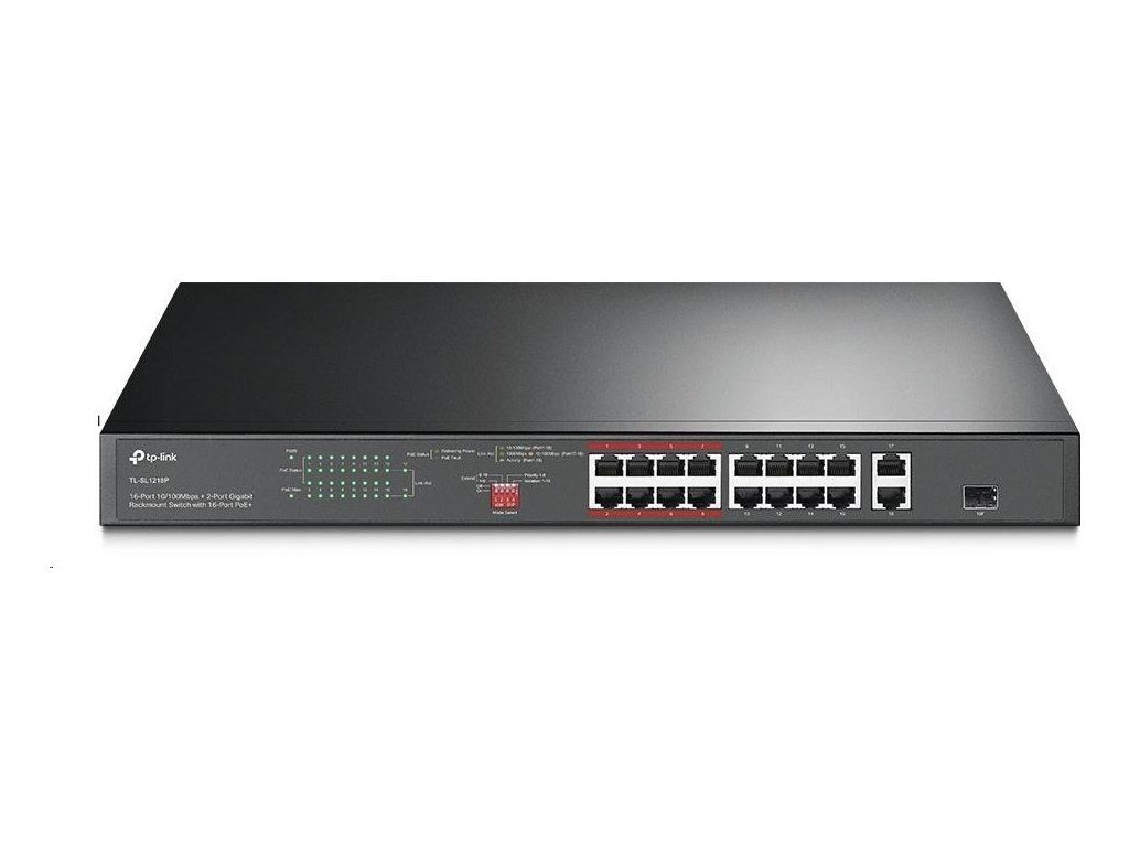 TP-Link CCTV switch TL-SL1218P (16x100Mb/s, 1xGbE uplink, 1xGbE/1xSFP combo uplink, 16xPoE+, 150W)