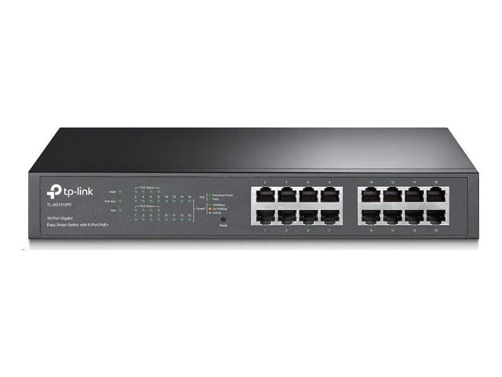 TP-Link Easy Smart switch TL-SG1016PE (16xGbE,8xPoE+,150W,fanless)