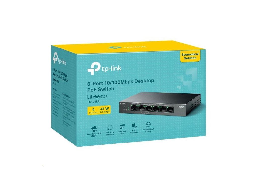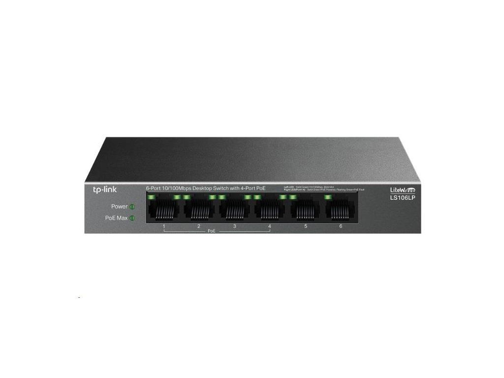 TP-Link LiteWave switch LS106LP (6x100Mb/s, 4xPoE, 41W, fanless)