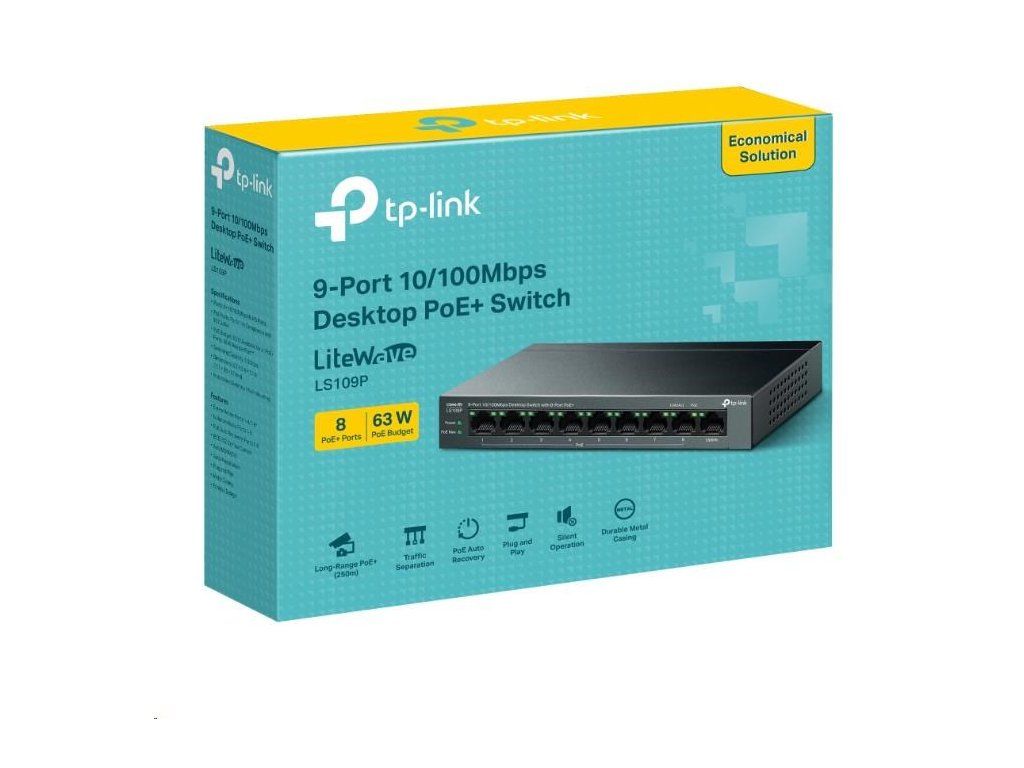 TP-Link LiteWave switch LS109P (9x100Mb/s, 8xPoE+, 63W, fanless)