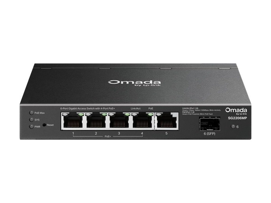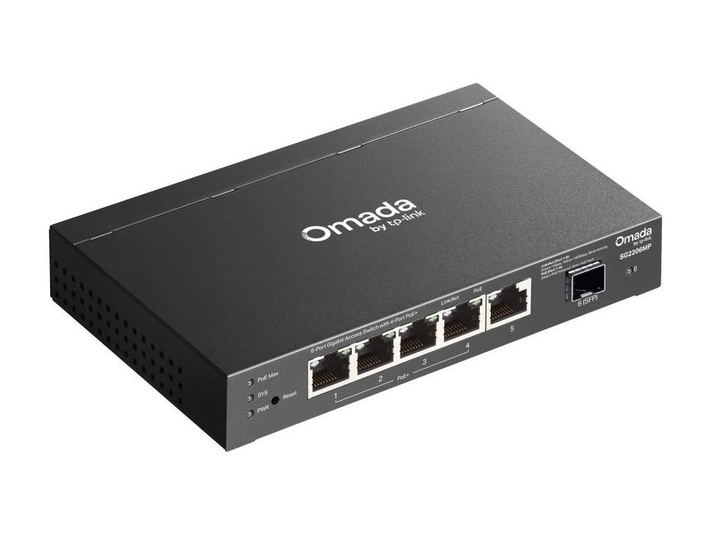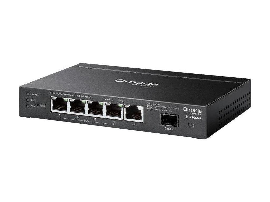 TP-Link OMADA switch SG2206MP (5xGbE,1xSFP,4xPoE+,63W,fanless)