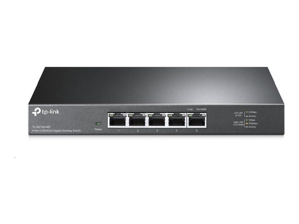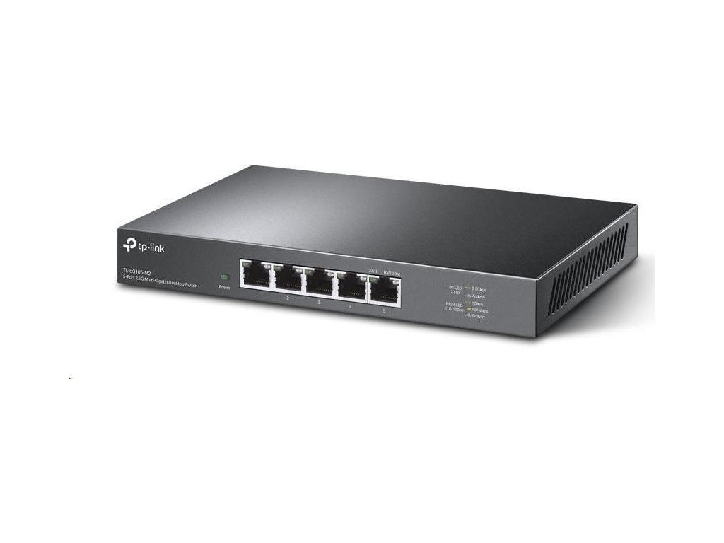 - Spoločnosť TP-Link prichádza s novou radou Multi Gigabitových switchov, ktoré dokážu nadviazať až 2,5 Gb/s link na každom porte. Tento základný model TL-SG105-M2 bez manažmentu v kovovom šasi má spolu 5 kovových portov s rýchlosťou 100M/1G/2.5G, indikačné LED na každom porte a jeden DC konektor na napájanie switche na zadnej strane (12V / 1.5A).