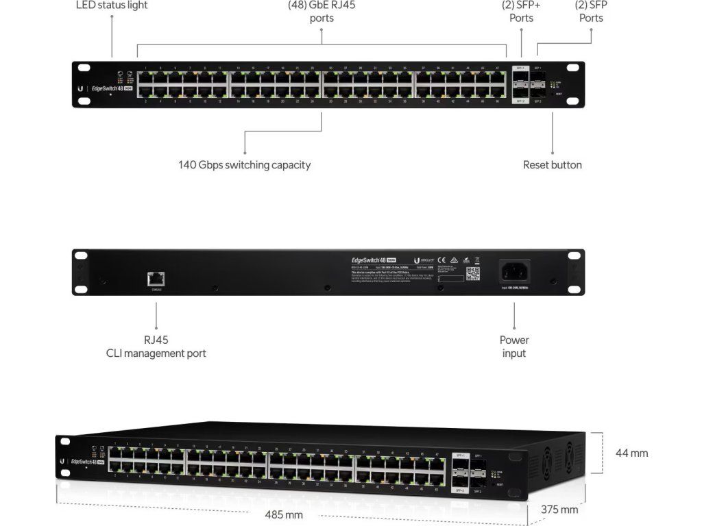 UBNT EdgeSwitch ES-48-500W [70Gbps, 500W, aktívny (802.3af/at) a pasívne (24 V) PoE, 2xSFP, 2xSFP+, L2/L3]