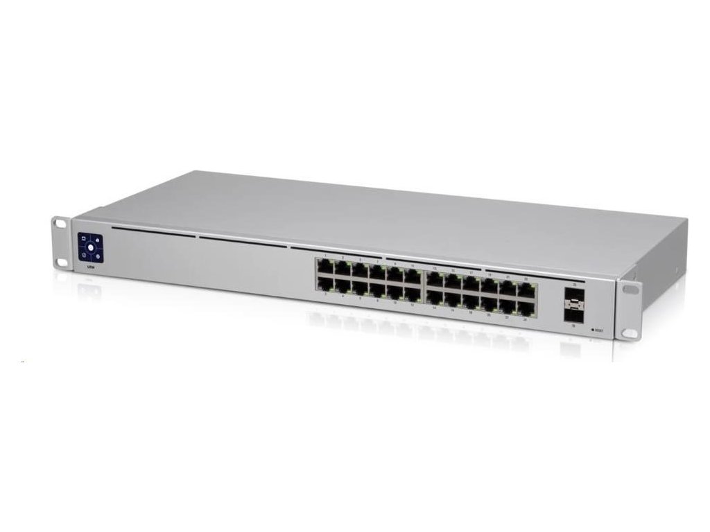 USW-24 je 19" rackový gigabitový prepínač L2 vybavený 24x gigabitovými portami LAN a dvoma portami SFP s prenosovou rýchlosťou 1 Gb/s. Okrem štandardných funkcií má prepínač aj 1,3" dotykový displej, ktorý poskytuje informácie o systéme, teplote, štatistikách portov a mnoho ďalšieho. Vďaka svojej konštrukcii a vynikajúcemu odvodu tepla nemá prepínač žiadny ventilátor, takže nevydáva zbytočný hluk, čo je ideálne napríklad na inštaláciu v kancelárii.