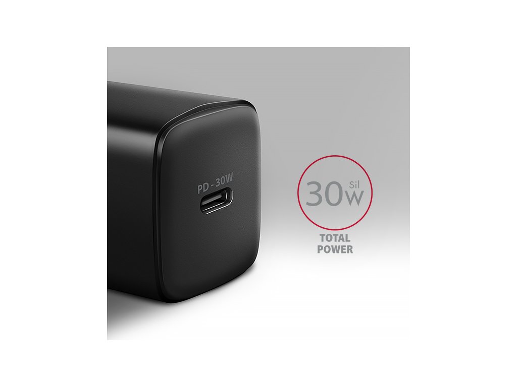 AXAGON ACU-PD30, Sil nabíjačka do siete 30W, 1x port USB-C, PD3.0/PPS/QC4+/SFC/AFC/Apple, čierna