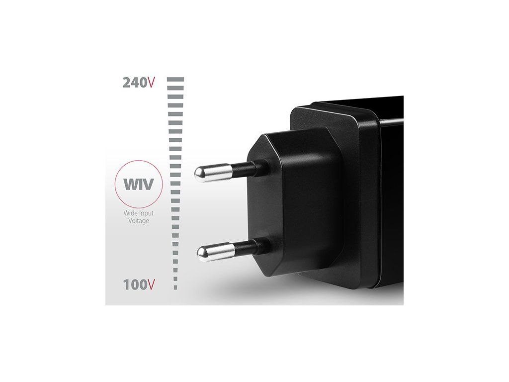 - Wide Input Voltage - funkcia širokého rozsahu vstupného napätia, chráni adaptér pred podpätím a prepätím na vstupe a umožňuje použitie viacerých "národných štandardov napájania".
