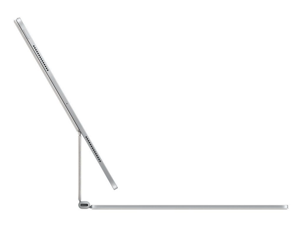 Magic Keyboard k iPadu Pro na pohodlné psaní a ovládání pomocí gest na trackpadu má nový elegantní design, hliníkovou dlaňovou opěrku a je krásně přenosný. Má řádek 14 funkčních kláves pro rychlý přístup k funkcím, jako je nastavování jasu displeje nebo ovládání hlasitosti, a USB-C konektor na průchozí nabíjení. Díky plovoucí konzolové konstrukci si hladce nastavíš ten správný pozorovací úhel.