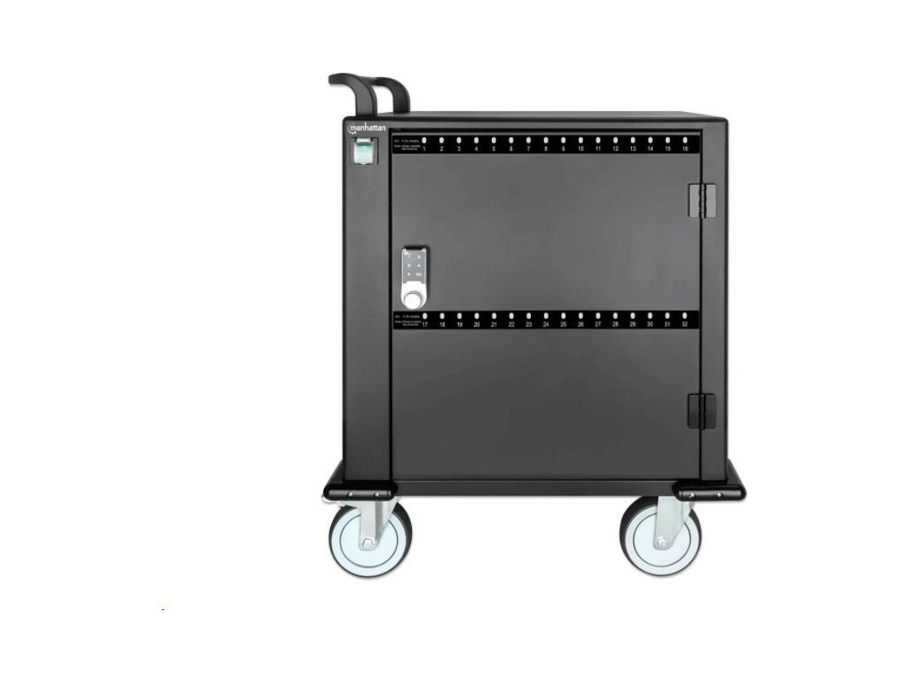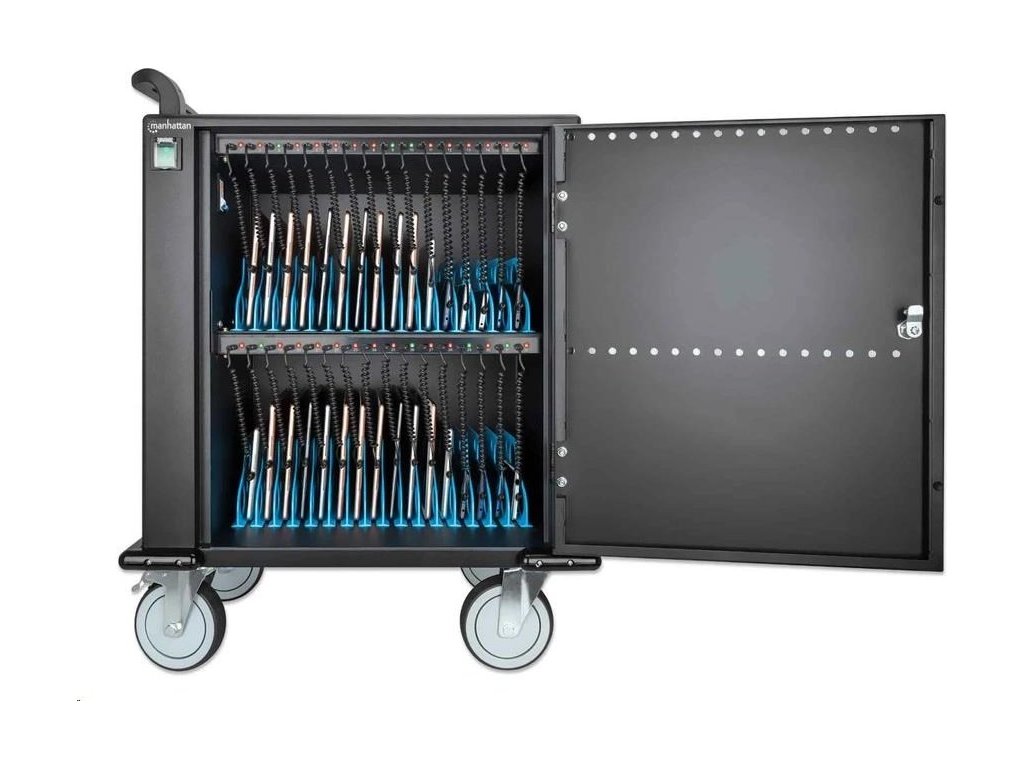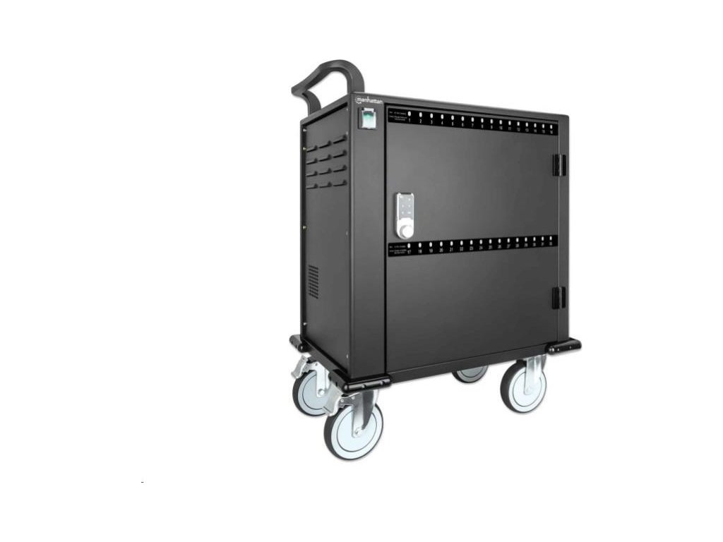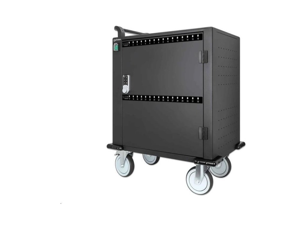 MANHATTAN nabíjací vozík - 32 portov, 576 W, prepäťová ochrana, tiché vetranie, kovový kryt, čierna farba