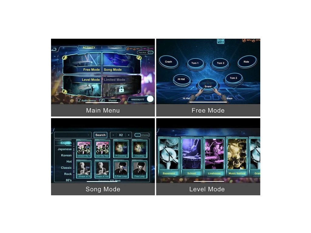 Aplikácia ponúka 3 režimy hry a je k dispozícii zadarmo pre zariadenia so systémom iOS aj Android. Jedinečný obsah aplikácie AeroBand zahŕňa učebné, zábavné a iné režimy, ktoré plne uspokojujú potreby učenia a hrania. Pomocou aplikácie môžete veľmi ľahko prehrávať svoje obľúbené skladby alebo si len tak bubnovať a skúšať, ako bubny fungujú.