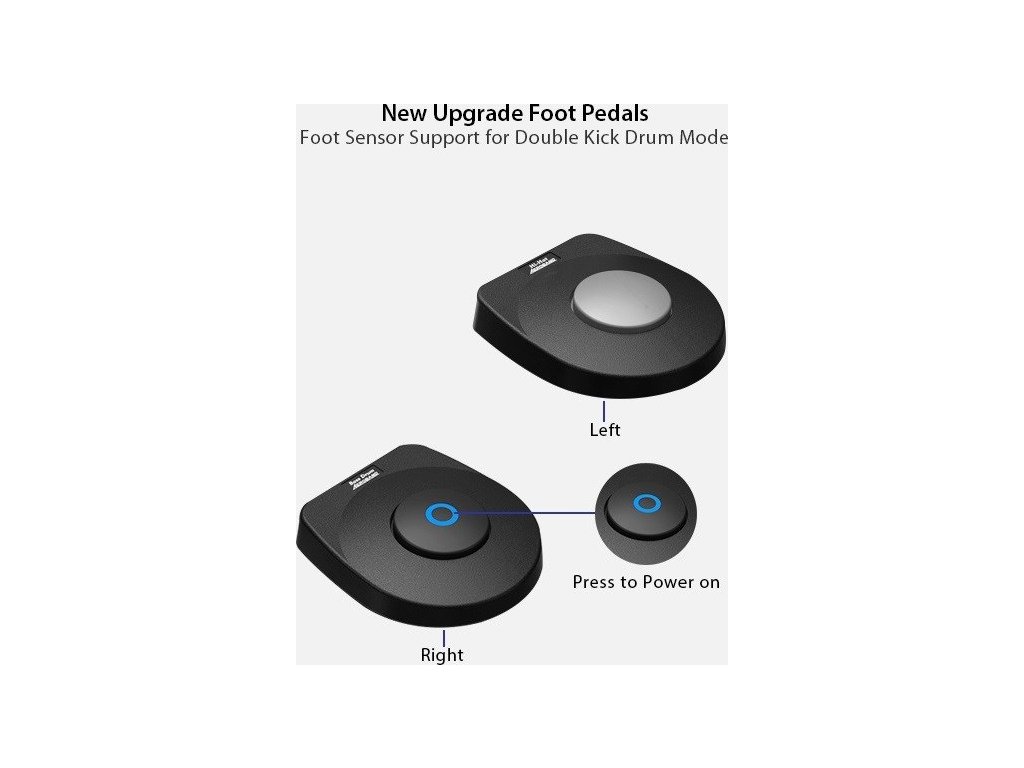 Podľa preferencií si môžete vybrať šiestich alebo siedmich dielne rozloženie zostavy, a to buď v klasickej verzii alebo vo verzii s kopákmi/šľapkami. Kopáky sú samostatné senzory dodávané iba v balení PocketDrum 2 PLUS KIT, ktoré sa jednoducho prichytia za šnúrky u topánok alebo okolo chodidiel pomocou dodávanej gumičky a umožňujú ovládanie basového bubna a hajtky (hi-hat) nohami – presne ako pri klasických zostavách bicích. (Pre variant s kopákmi je nutné mať tieto senzory