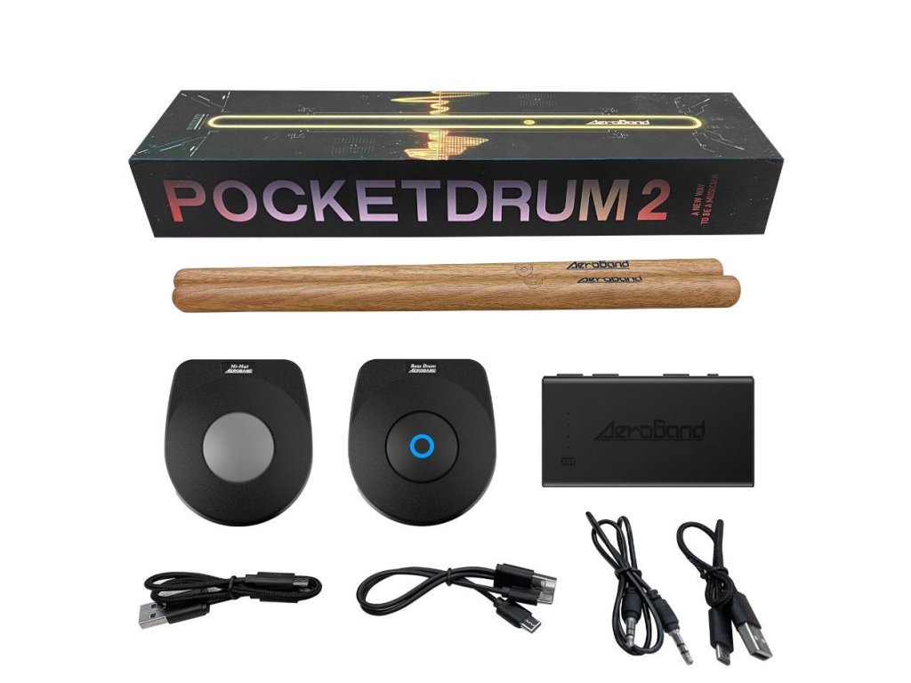 PocketDrum 2 PLUS je vaša osobná inteligentná prenosná bicia súprava, ktorú môžete mať vždy so sebou! Obsahuje inteligentné bubny, 2 kopákové bubny a 3.5mm jack adaptér.