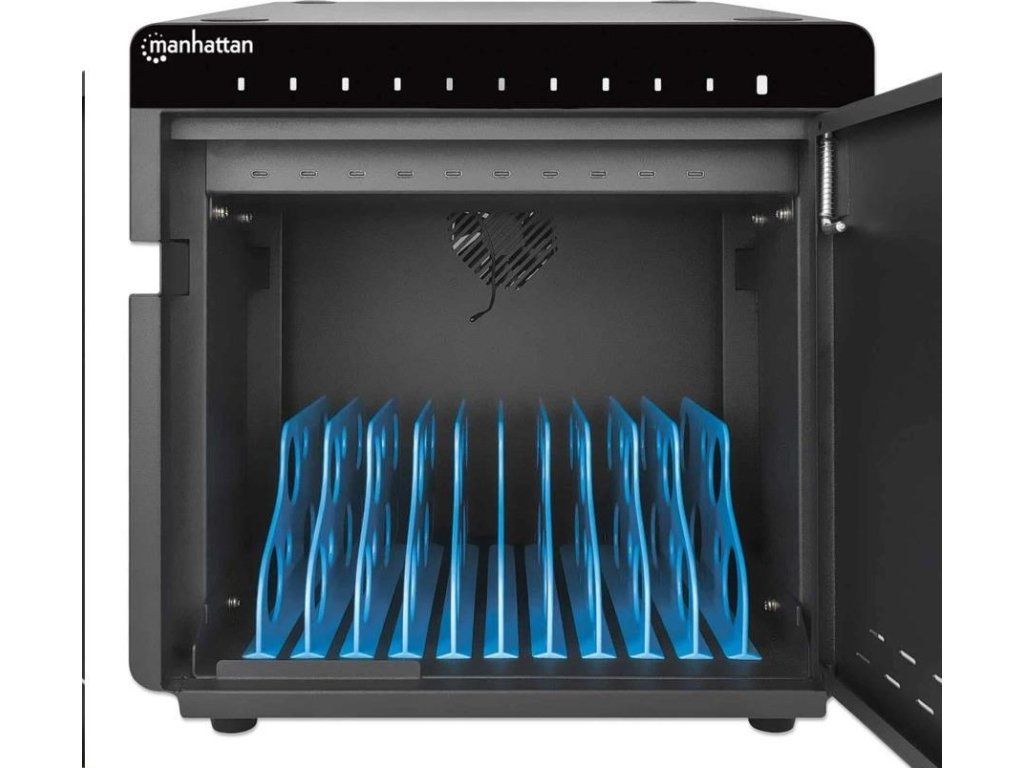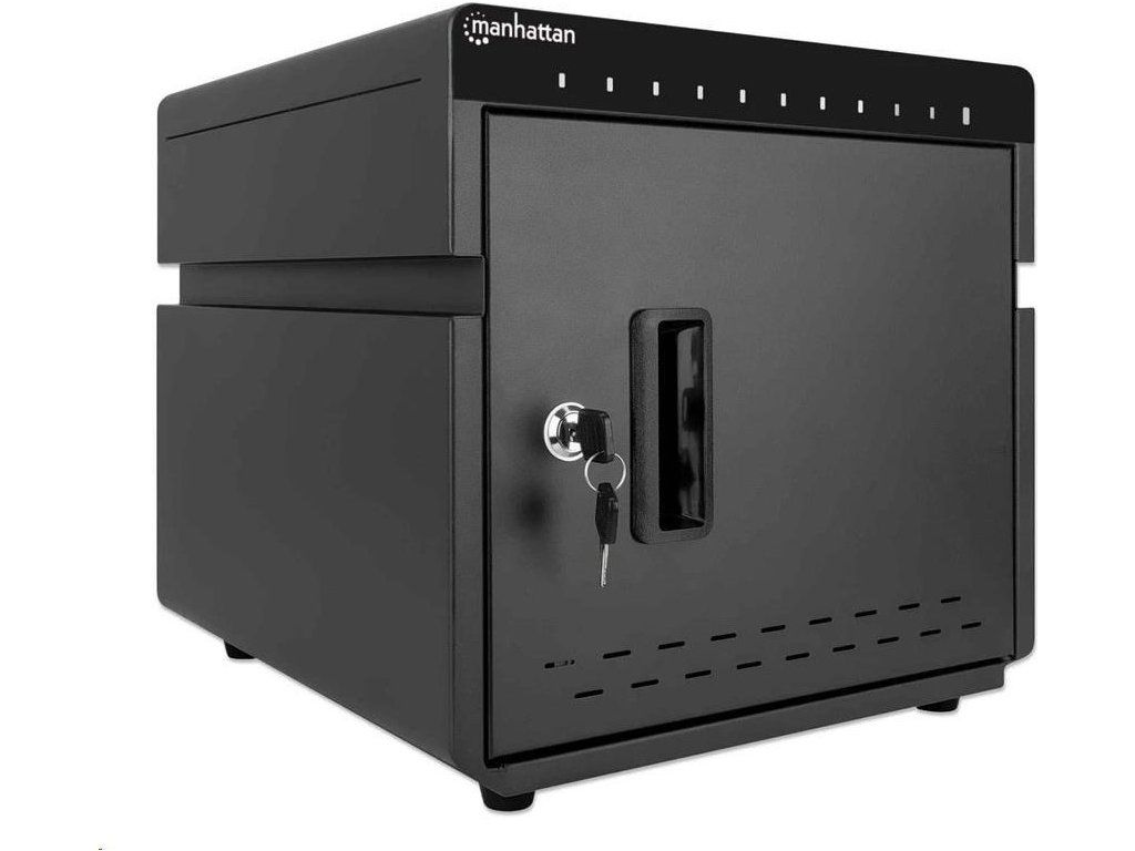 Stolná nabíjacia skrinka MANHATTAN - 10 portov, 180 W, prepäťová ochrana, tiché vetranie, kovový kryt, čierna